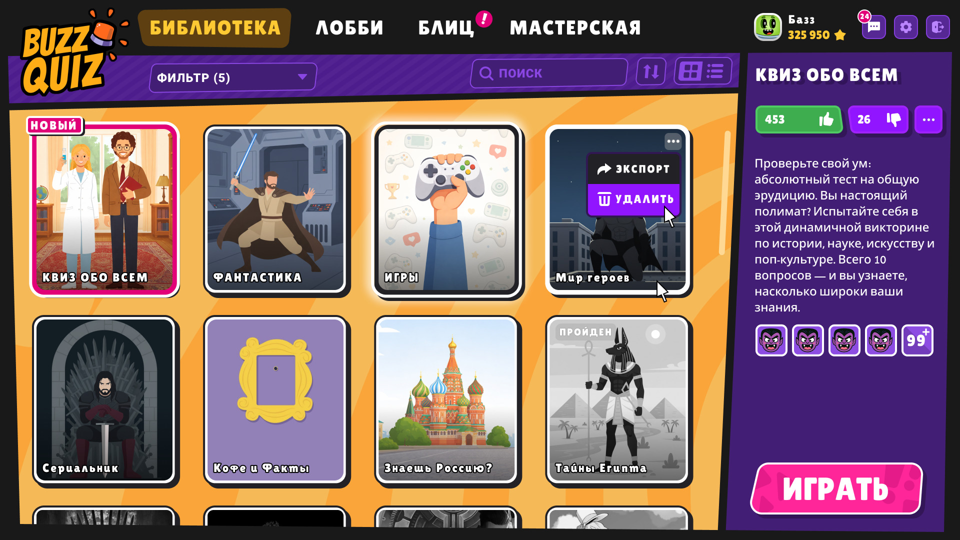 Buzz Quiz — это твой личный мир квизов: играй, создавай, делись и устраивай самые громкие интеллектуальные вечеринки!