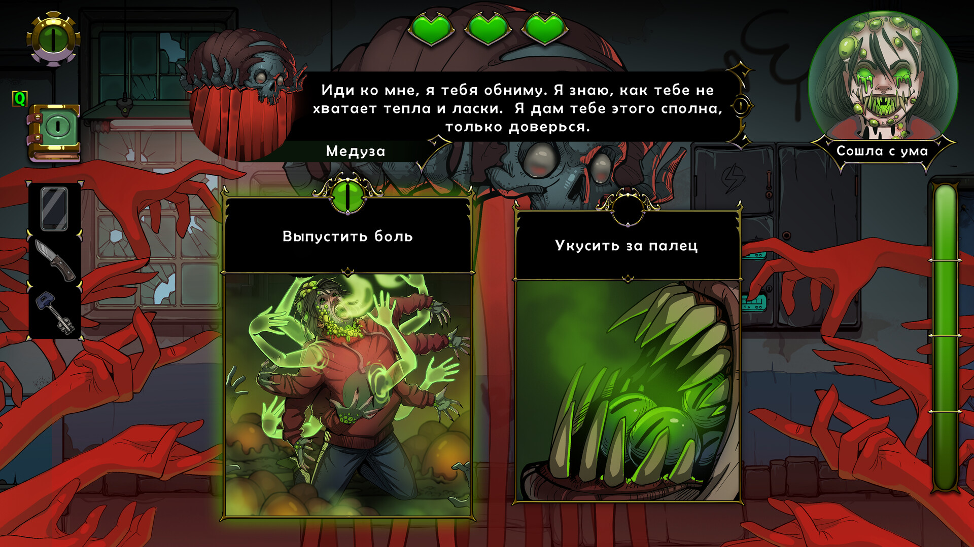 Используйте найденные предметы, вступайте в схватки с порождениями сознания, принимайте абсурд происходящего и решайте: выбраться из этого кошмара или утонуть в нём окончательно.