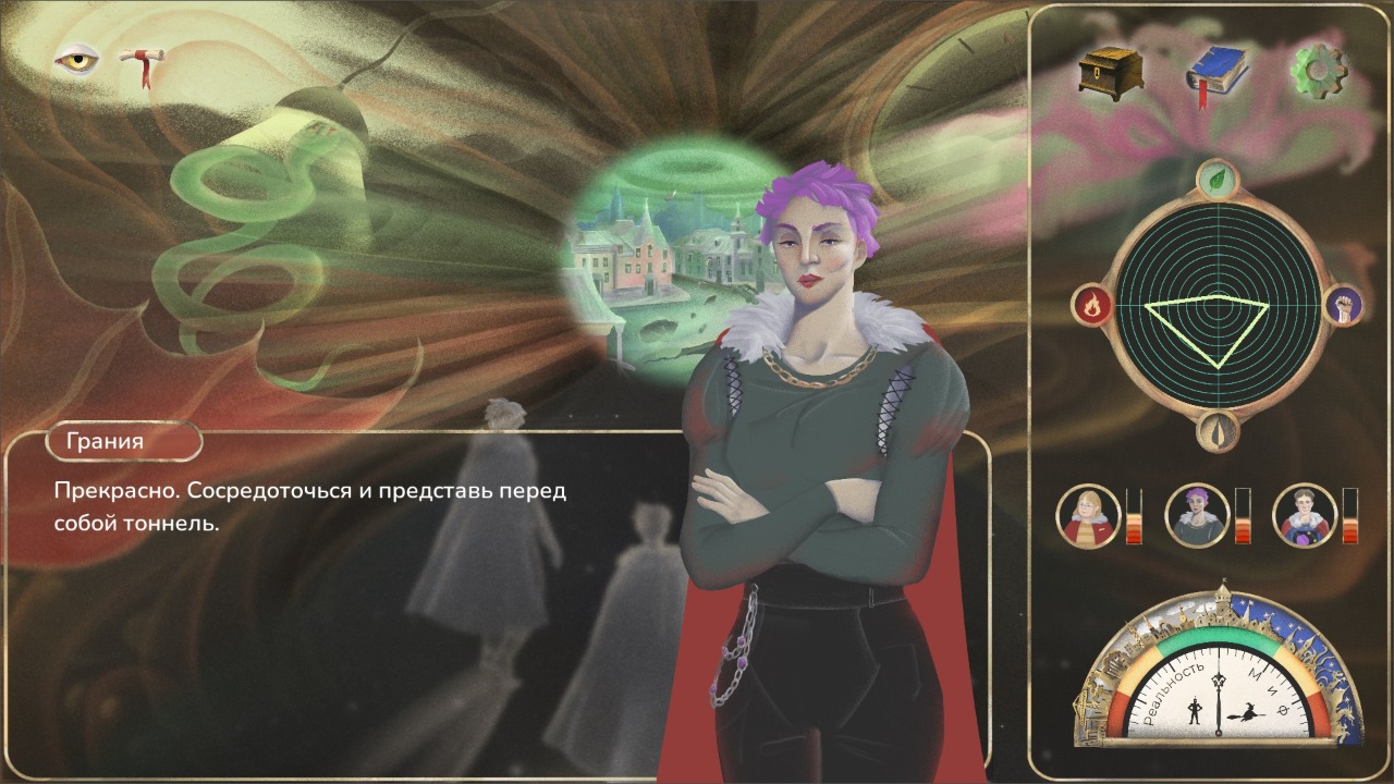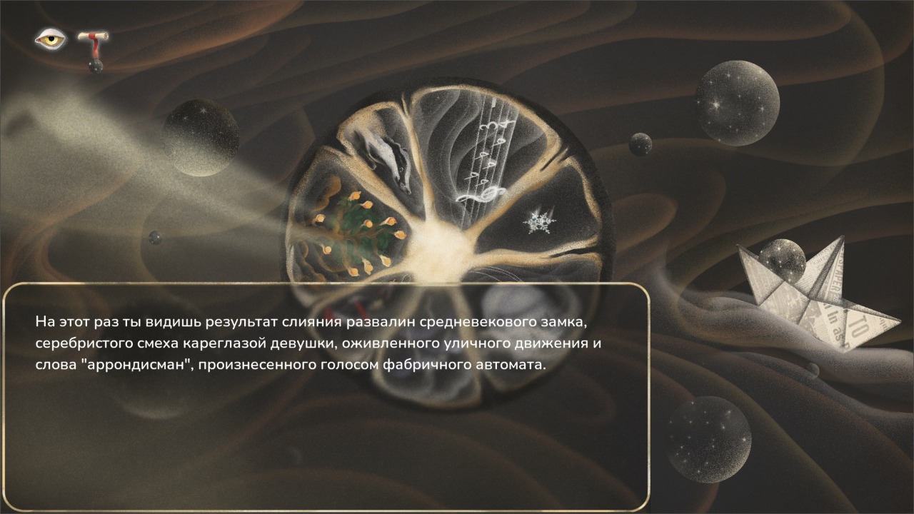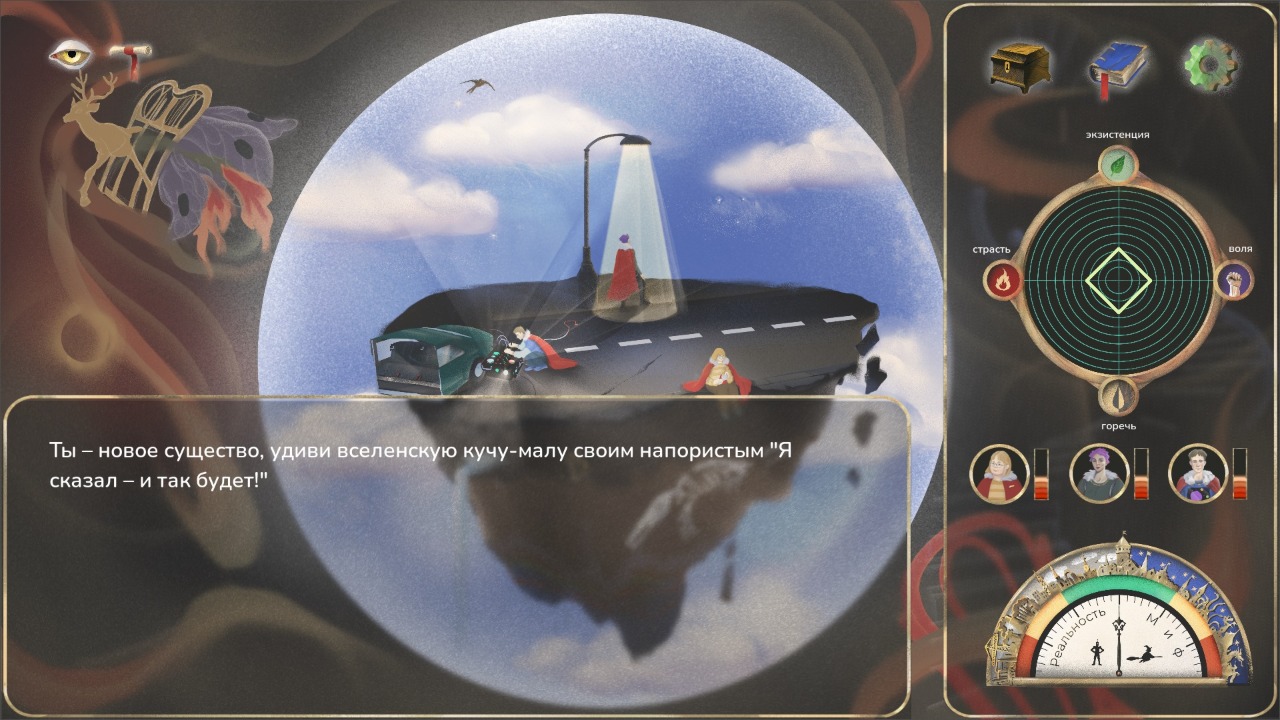 Оформление причудливого, странного и самобытного нельзя доверять нейросети, которая рассчитана на усредненный продукт. Поэтому все, что ты увидишь во время своего приключения, нарисовано вручную, профессиональным художником с каплей пота на нахмуренном лбу.