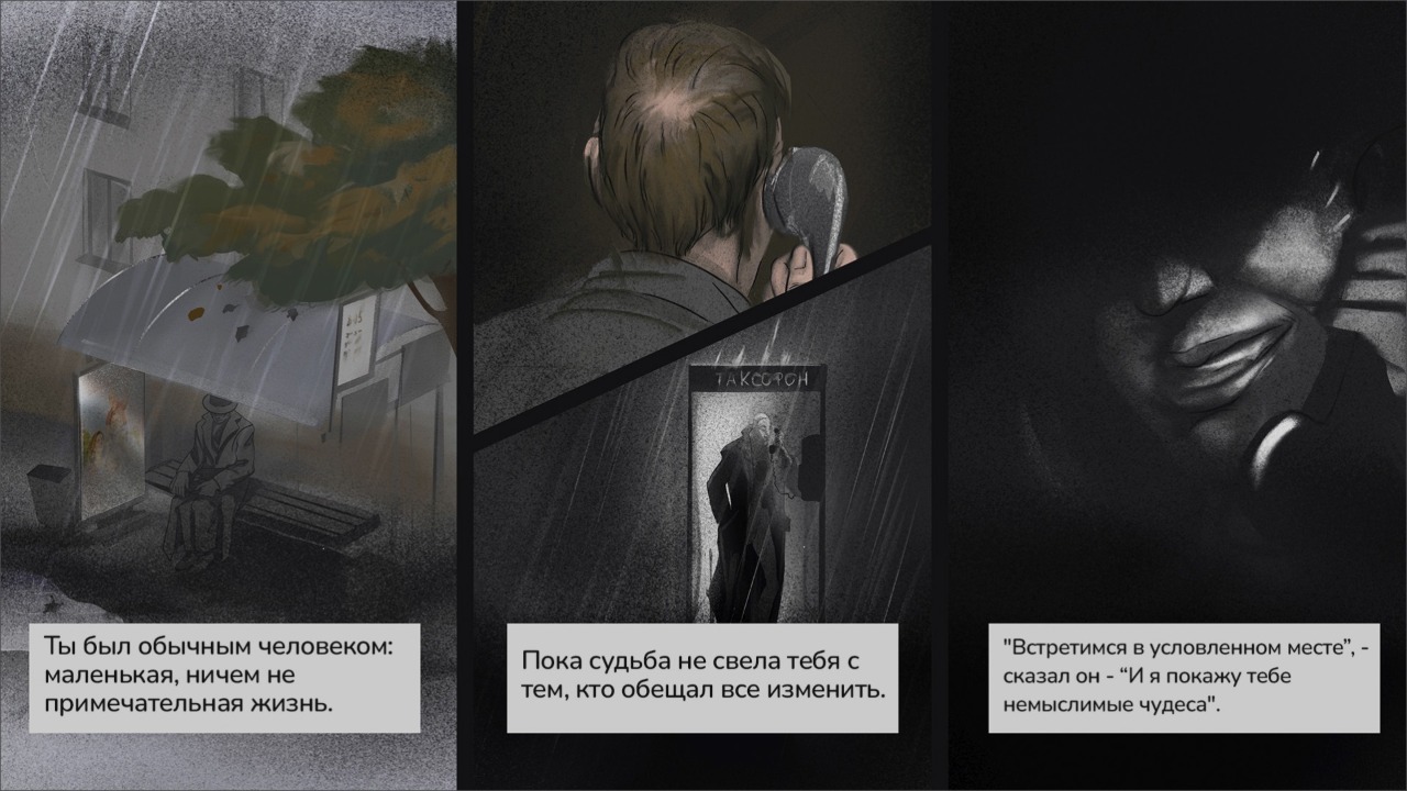 Литературная основа нашей игры - одноименный сборник рассказов отечественного писателя-фантаста Дмитрия Шатилова. Благодаря такому фундаменту ты можешь быть уверен, что ни одна сюжетная линия не останется незавершенной, все мотивации персонажей найдут свое объяснение, а финал, полностью зависящий от твоих действий в ходе повествования, приведет к катарсису.