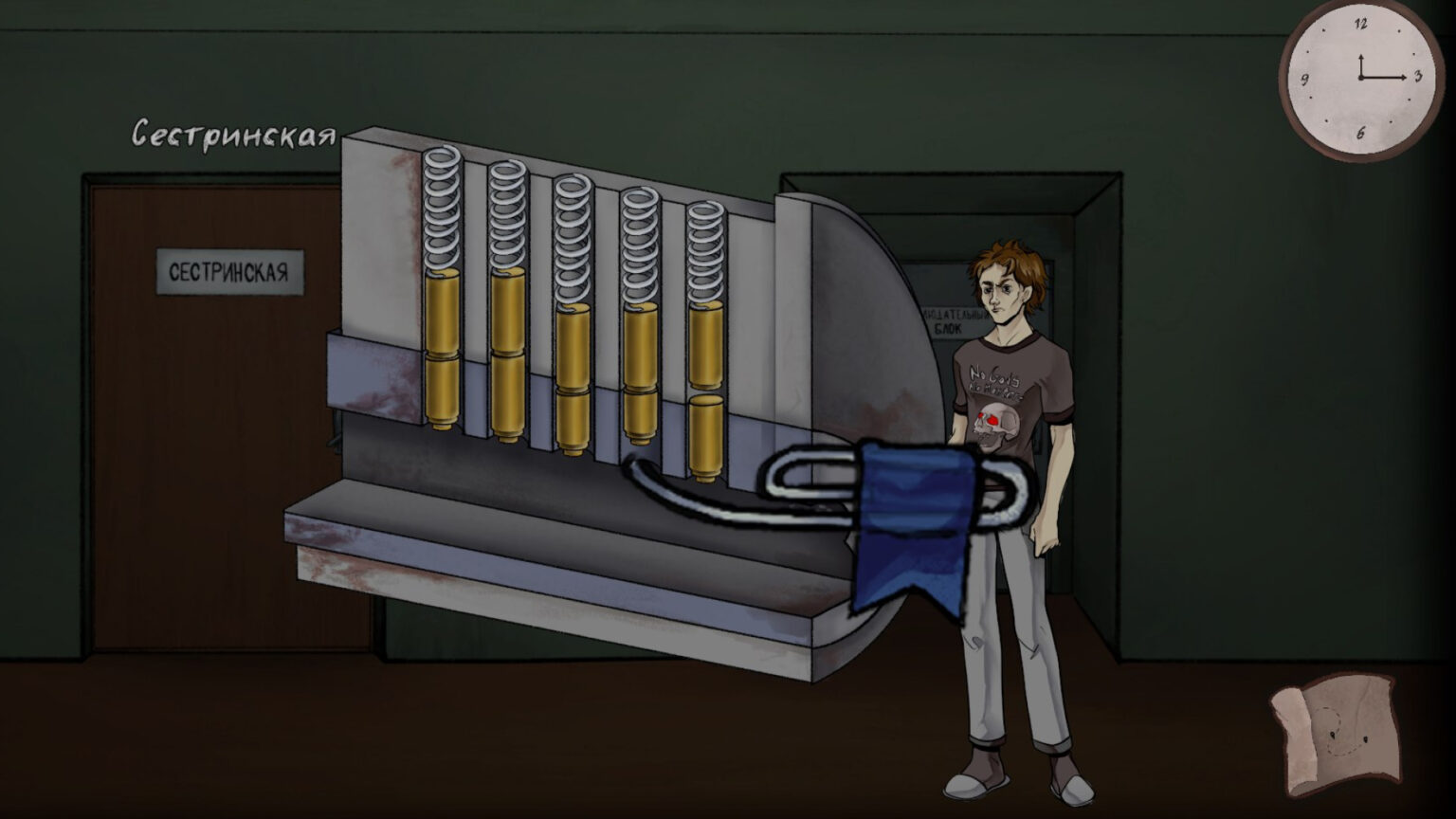 Детализированные локации психиатрической клиники, простые и понятные образы пациентов и персонала, забавные картинки на стенах, жуткие рисунки особо безнадёжных пациентов… всё это не просто украшает игру, а создаёт цельную атмосферу и погружает в мир психиатрической клиники.