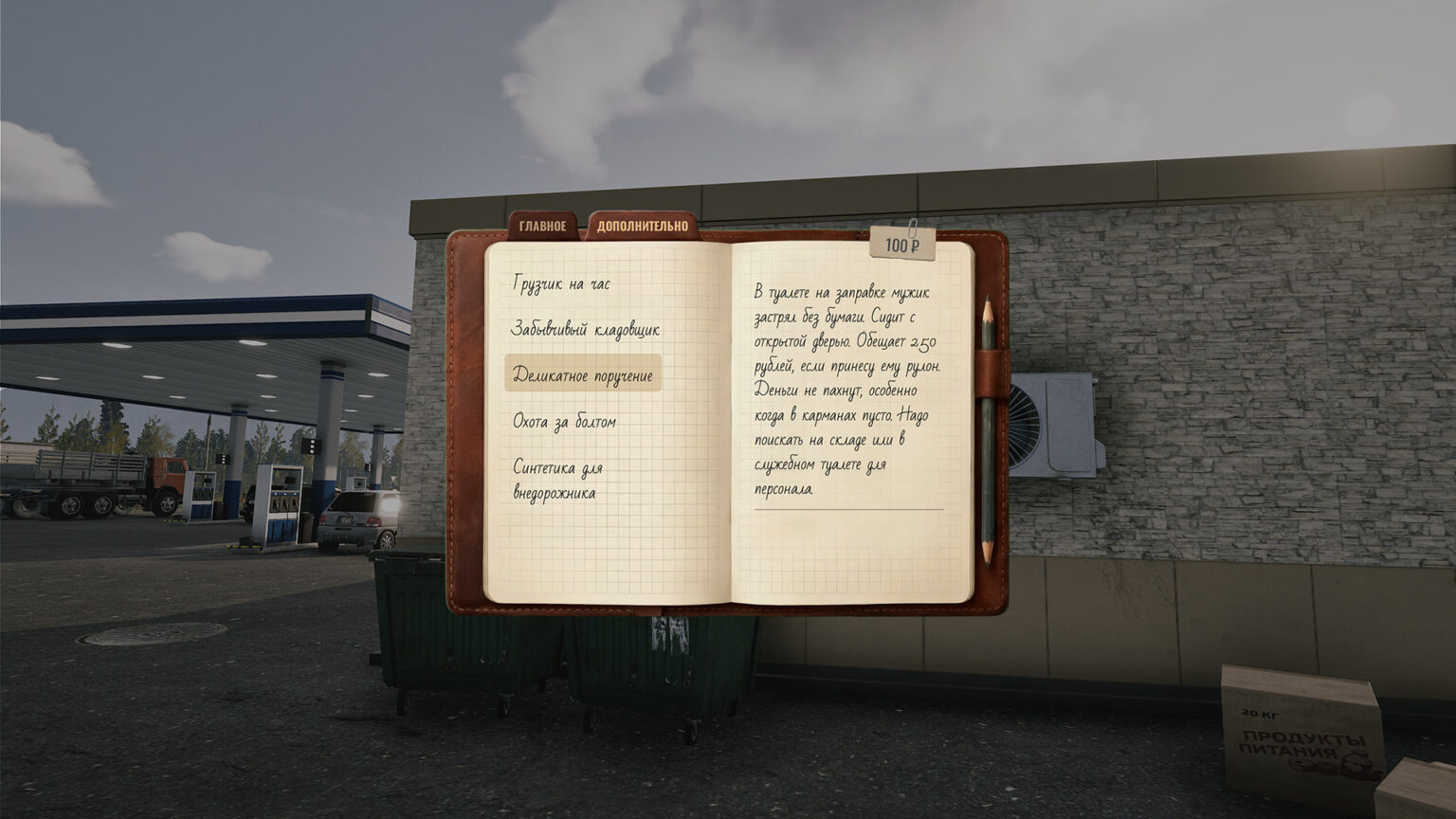 Задания в игре, далеки от реальности, в обычной жизни человека не пустят на склад, без присмотра, скручивать болты с чужой машины - не лучшая идея, реализация выполнения заданий подкачала. В реальной жизни можно поехать попутчиком не за деньги, а за хорошие истории, либо какую то помощь, этим можно разнообразить геймплей.